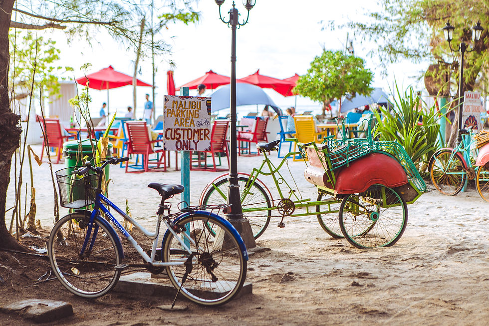 Angekommen auf Gilli T waren Andi und ich wirklich überwältigt und uns war sofort klar, warum dieses Paradies zu Indonesiens Top Reisezielen gehört. Grinsend sind wir in Richtung Unterkunft geschlendert und waren von Beginn an von der Insel angetan. Außerdem hat nicht nur der tolle Meeresanblick zu unserem entspannten Wohlbefinden beigetragen, sondern auch die Art und Weise, wie man sich auf der Insel fortbewegt. Die einzigen Transportmittel sind hier nämlich Fahrräder und Pferdewägen, also keinerlei Verkehrschaos, was wir von Bali gewohnt waren.